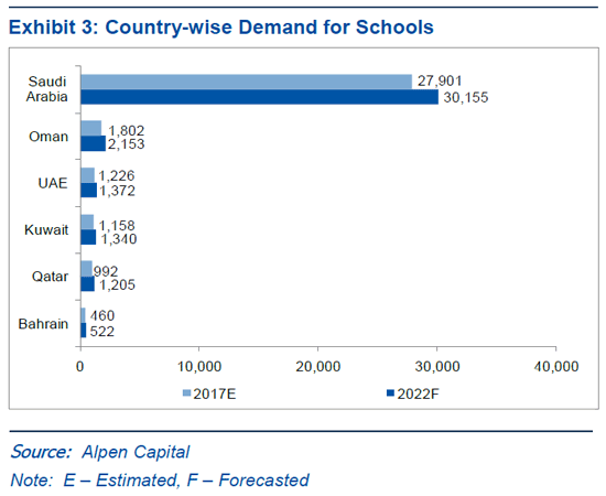 “Decline in oil prices resulted in challenging macroeconomic conditions for the GCC countries and forced the regional economies to exercise fiscal discipline. Cost rationalization and consolidation exercised by corporates and institutions have resulted in job losses and pressure on demand across industries, including the education sector. Recent pick-up in oil prices is expected to bring new energy for infrastructural spending and business activities. Additionally, there is considerable opportunity for consolidation in the segment which, along with favourable demographics, high disposable income and growing awareness for quality education, is likely to play a pivotal role going forward”, says Mahboob Murshed, Managing Director, Alpen Capital (ME) Limited