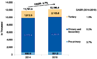 The influx of international institutions and oversupply of local education providers has elevated competition among private operators. Fee reductions, establishing digital and virtual learning platforms, implementing blended learning structures and acquiring new technological expertise have resulted in lower revenues, which has put the operators under pressure. Inherent shortage of skilled teachers and preference for tertiary education in overseas destinations are also hampering growth of the sector.