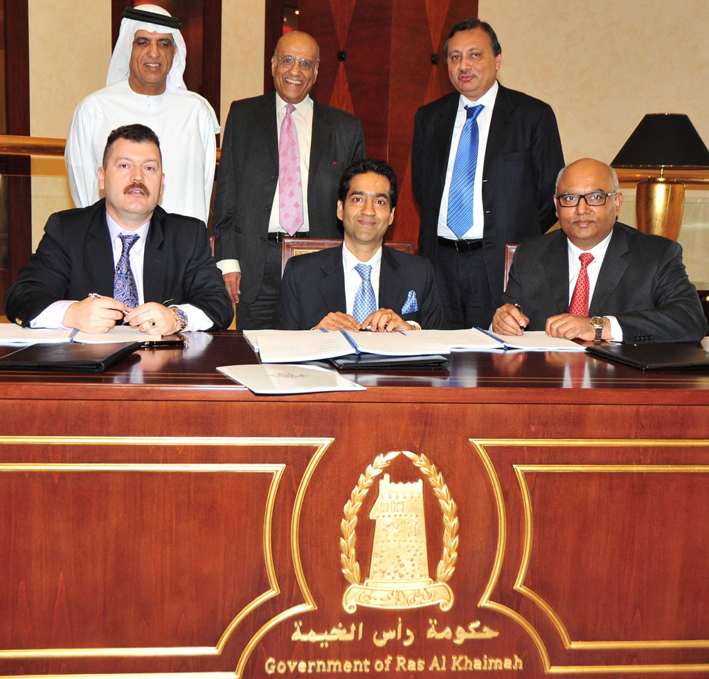 His Highness Sheikh Saud Bin Saqr Al Qasimi, Supreme Council Member and Ruler of Ras Al Khaimah attended the formal signing ceremony in Ras Al Khaimah on March 31st along with Saroj Kumar Poddar, Chairman of Zuari Agro Chemicals Limited, a company part of the Adventz Group, Suresh Krishnan, Managing Director, Zuari Agro Chemicals Limited, Akshay Poddar, Executive Director, Zuari Agro Chemicals Limited, Naser Bustami Executive Board Director of RAK Maritime City, Rohit Walia, Executive Chairman, Alpen Capital and Sanjay Vig, Managing Director, Alpen Capital.